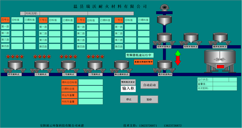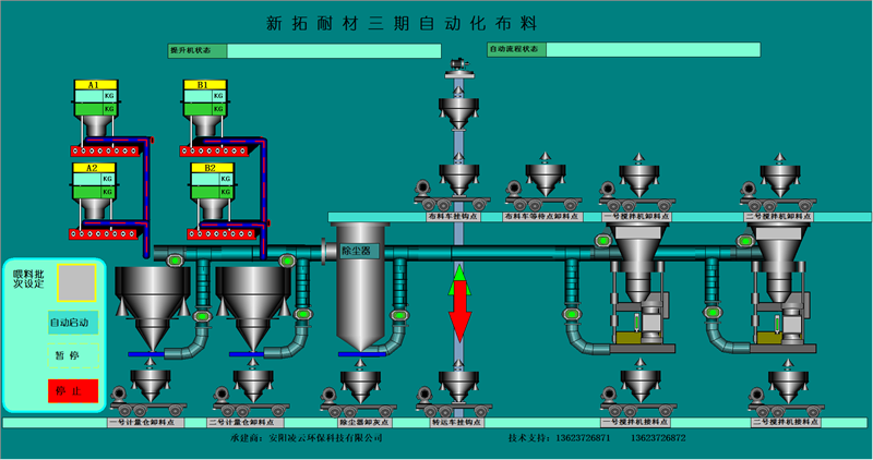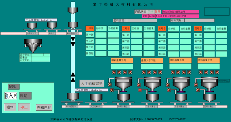 本公司擁有優(yōu)良的生產(chǎn)設備和技術開發(fā)團隊,以良好的管理模式,豐富的生產(chǎn)和設計經(jīng)驗為環(huán)保工作做出了的一定的貢獻。主要針對鋼鐵、耐材等行業(yè)無塵環(huán)保配料工藝的改進,設計和生產(chǎn)全自動化無塵配料設備。除塵部分分為:集中式收塵和分散式收塵。計量部分分為:增量計量和減量計量控制模式??刂撇糠址譃椋杭儐纹瑱C控制、單片機加PLC控制、純PLC控制。